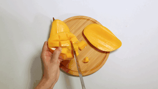 3. 堆叠时要注意一层放上芒果,下一层不放芒果,再下一层放芒果...每层都有芒果的话班戟皮容易破。