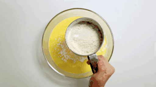 4. 碗中过筛135克低筋面粉,搅拌均匀做成面糊