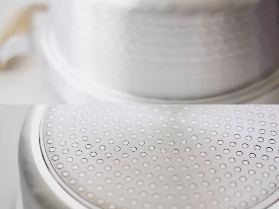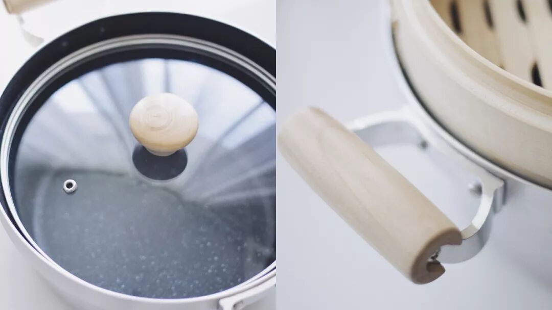 铝合金的锅体,经过反复打磨、砂光、品鉴,看起来光滑平整有质感。表面还有类似雪平锅的锤纹工艺,使得锅子导热效果极好,煮水很快就能开,不用长久等待。不需要蒸制时,用它下碗面,煮个火锅也很合适。