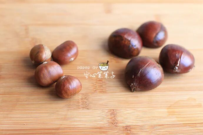 (1)栗子洗净,用锋利的厨房剪在顶部割出十字口。