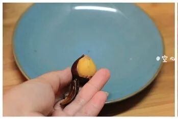 4.【冰箱冷冻法】:栗子煮熟后,将其冷却,放入冰箱内冷冻两小时,可使壳肉分离。这样栗衣剥起来既快,栗子肉又完整。