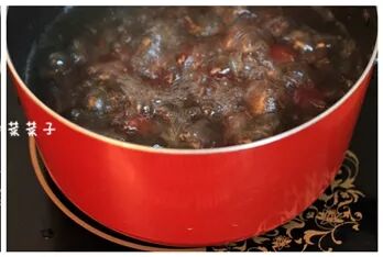 8. 再加入适量的开水、生抽和冰糖一起煮开。