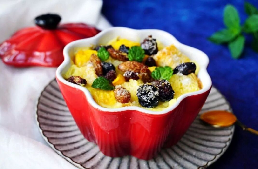 黄桃面包布丁 by@豆友 jmy的私房菜