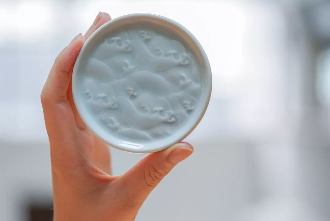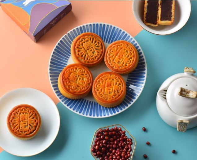 这次【艾格吃饱了】特别定制了由景德镇制造的一方一圆小瓷碟,大小厚度刚刚好,刻有传统的福山寿海纹,搭配饱记月饼,既小巧好看。