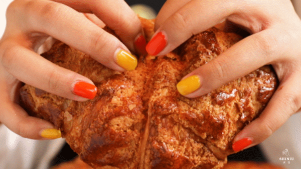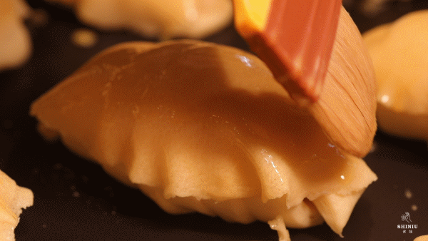 传统手法制作出的菠萝酥皮,刷上蛋液后放进烤箱,只需13分钟就分裂成可口的模样,香酥焦脆,勾人馋虫~