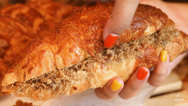 『吃出肉干味的牛肉松牛角包』