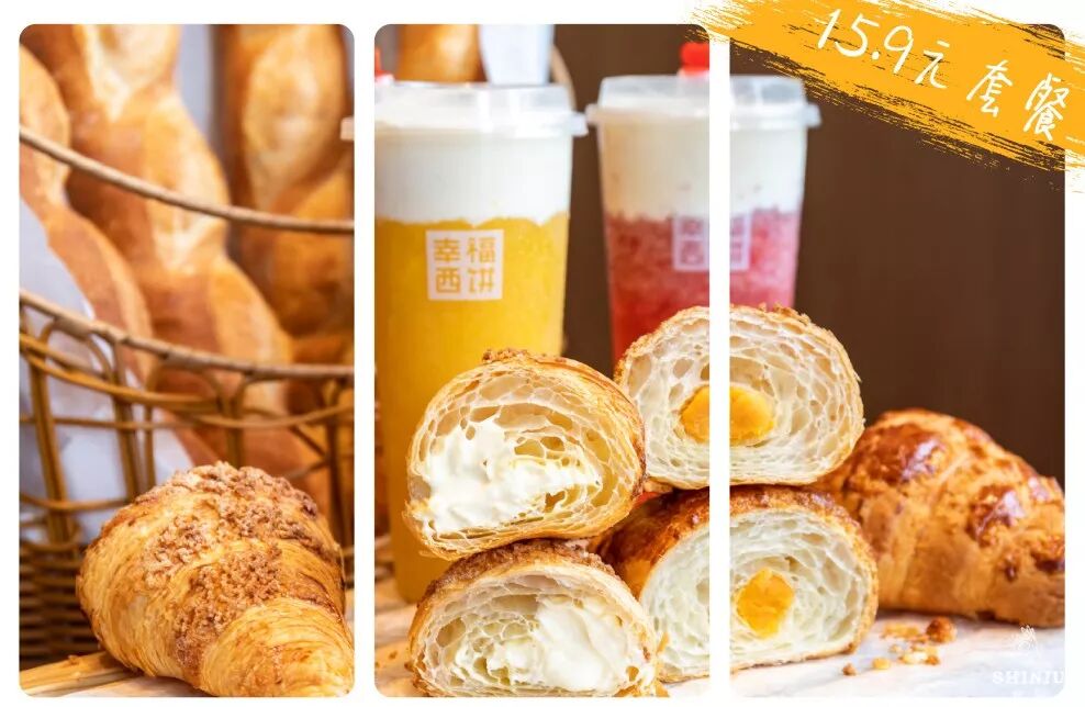第一个当然要数超贴心的15.9元套餐,『莓莓芝芝』or『芒芒芝芝』+『蛋黄奶酥牛角包』or『流心牛角包』二选一,半价吃个爽!