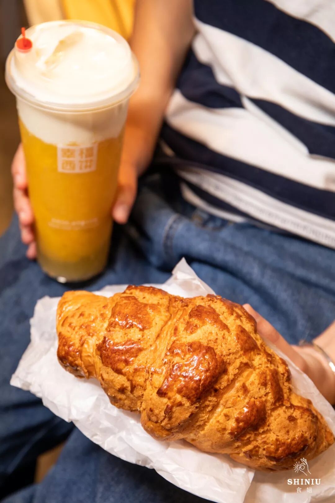 冰凉清爽的芝士奶盖茶配香甜酥脆的牛角包,是这个夏天最清新的搭配了~