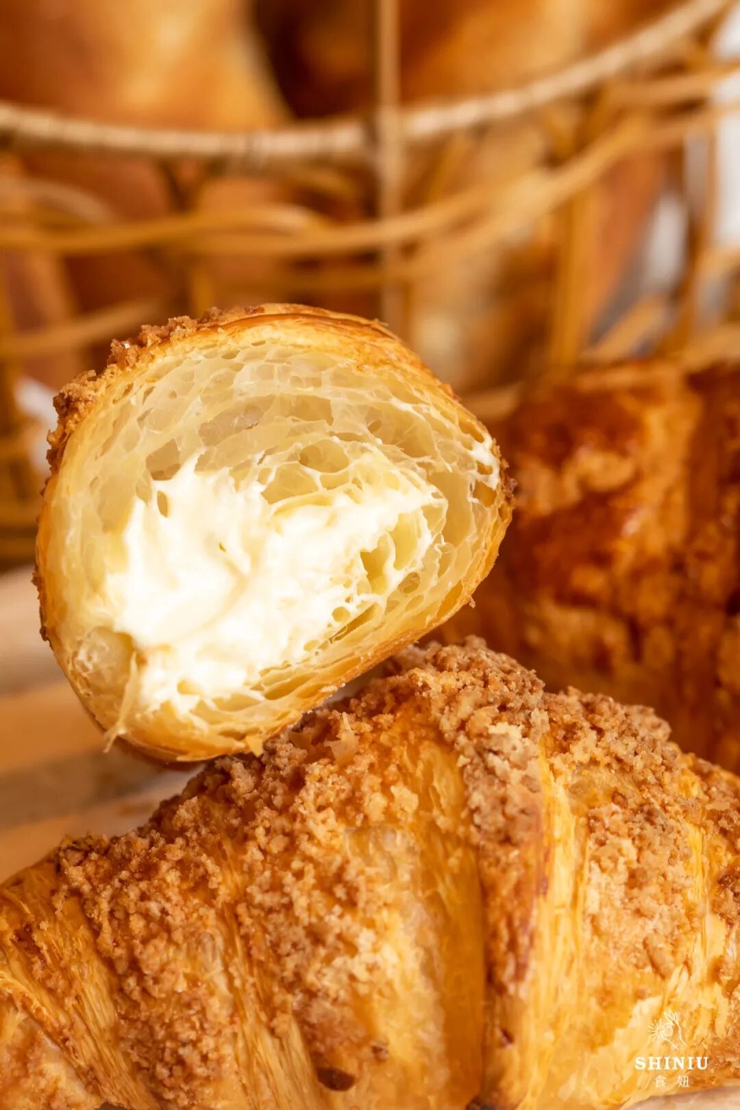 27层的蜂窝面包,与轻盈的流心奶油仿佛天定CP,让奶油更好得充盈满牛角包每一个毛孔。