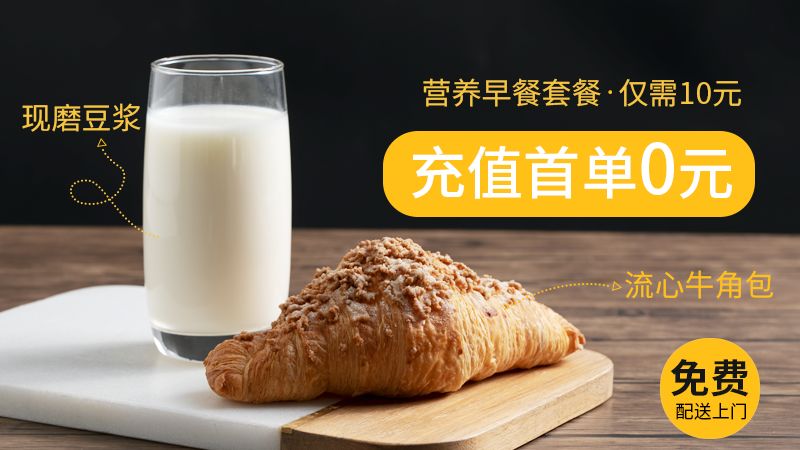 承包了午后再承包早晨,充值首单后,『豆浆+牛角包』早餐不要钱!每天清晨的现磨豆浆,可以提前一天预订,第二天早上免费送到家和公司哦~!