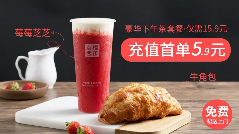 充值首单还能以5.9元get『莓莓芝芝』+『牛角包』套餐,小二想来10份!