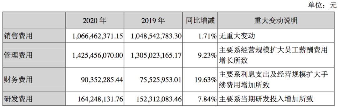 从费用方面看,销售费用和管理费用为主要支出,分别达10.66亿、14.25亿,同比分别增长1.71%和9.23%。研发费用虽然同比增长7.84%,但也只有1.64亿,与销售费用相差甚远。