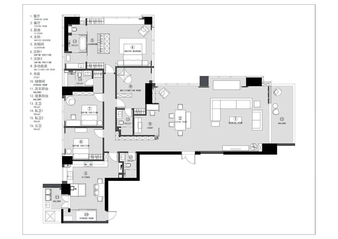 以上就是这套260㎡大平层装修了,简洁轻快、低调不奢华,绝佳的采光与视野着实让人羡慕,难怪越来越多有钱人都选择大平层。