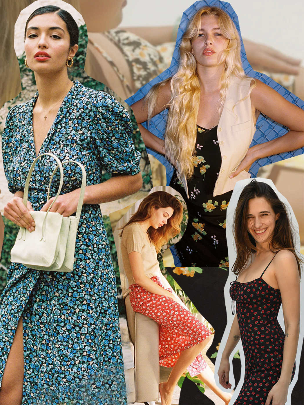 大碎花热情奔放~但奔得密密麻麻,完全看不出底色的裙子慎入。它们是村花本村,让你又媚又俗。正确示范是左边这种底色与花色分明的碎花裙。